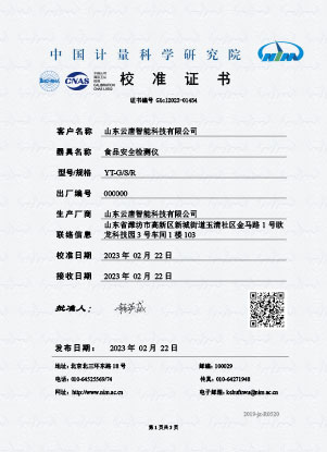 農殘校準證書